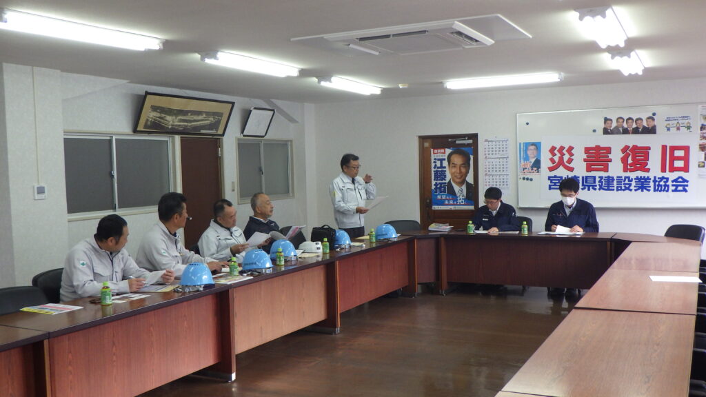 12月2日(火)、延岡労働基準監督署と延岡地区木造家屋建築工事安全委員会による、木造家屋建築工事の安全パトロールが行われました。木造家屋建築工事等の労働災害防止、安全意識の向上促進のため毎年実施しています。 今回は監督署より2名、当協会より3名、延岡電気工事業協同組合より2名が参加し巡回。市内の工事現場にて、担当者立会いのもと作業環境の確認や現場指導を行いました。